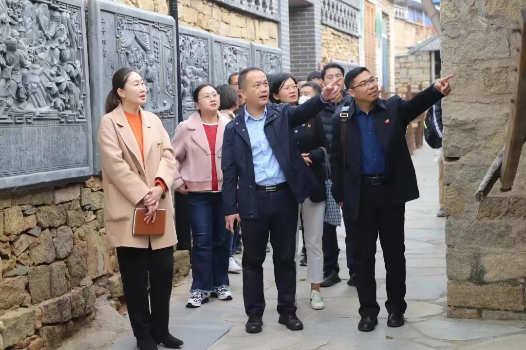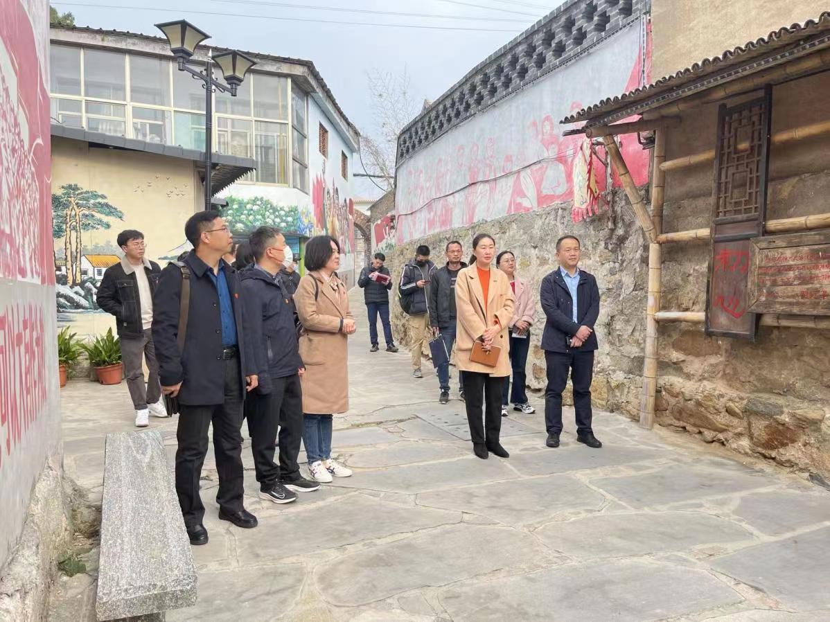 (一)實地調研環節:人文藝術學院黨總支及教工二支部黨員代表前往馬套村進行實地調研,先后參觀村內古槐路、村史館及茶葉生態園,通過村支部黨員的現場講解,支部黨員了解到馬套村整體規劃和黨建工作的先進做法,以及目前面臨的難題。