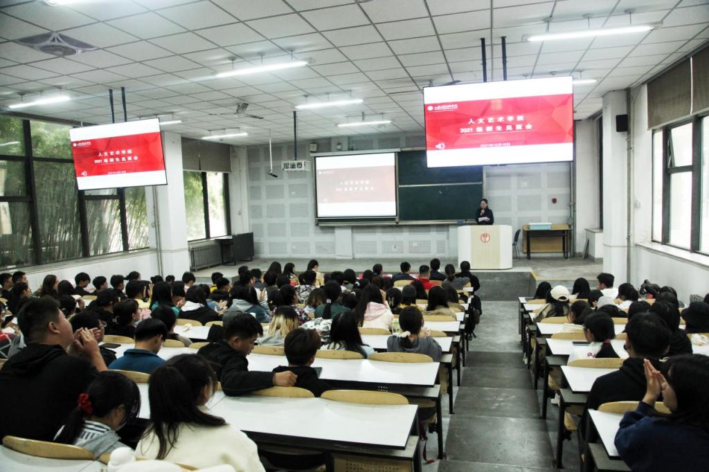 2021年10月15日,人文藝術學院在歡迎來到公海7108線路長清校區綜合樓十合堂舉辦了2021級師生見面會。院長徐磊、黨總支副書記張曉寧、副院長劉婭萍、各教研室主任、專業指導班主任、輔導員及辦公室人員與全體新生共同出席了本次見面會。本次見面會由2021級新生輔導員李晶主持。