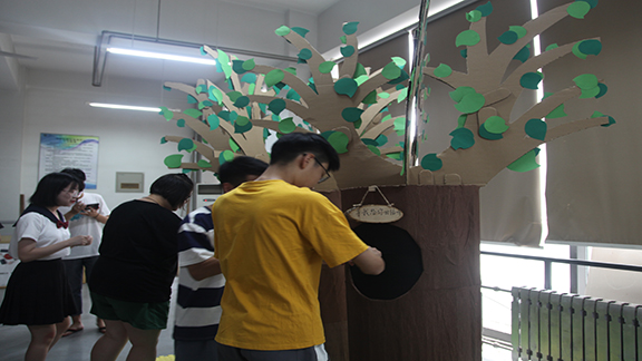 首先李老師講述了樹(shù)洞的古老來(lái)歷和實(shí)質(zhì),介紹了樹(shù)洞分為“會(huì)回信”和“守口如瓶”這兩類,之后老師讓大家寫(xiě)下自己的秘密投入到樹(shù)洞中去,同學(xué)們將自己的紙條按照是否想要回復(fù)投進(jìn)了不同的樹(shù)洞,接著大家設(shè)計(jì)了自己心中的樹(shù)洞,最后同學(xué)們用一句話分享了自己的活動(dòng)感觸。