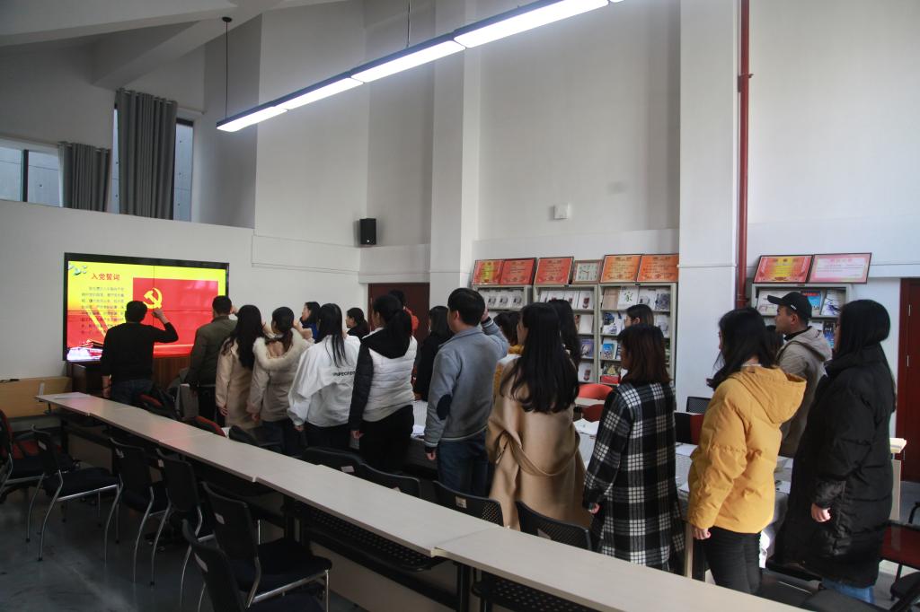 大會在莊嚴的國際歌中拉開帷幕,學生黨支部書記楊端舉宣讀了2018年度新發展黨員名單。隨后,在支部書記的領誓下,新發展的黨員進行入黨宣誓,老黨員同志重溫了入黨誓詞。