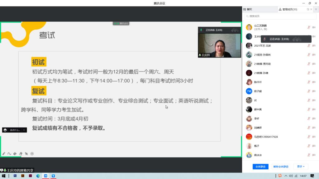 為加強學院學生對考研知識和經驗的了解,營造積極向上的學風,保證學生高質量完成學業,4月30日下午,繼續教育學院“匠心之翼”學風建設系列講座之二——考研交流會在線上開展。會議由路鵬老師主持,碩士研究生王慶玲主講。教師代表及全體學生參加。