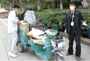 志愿者們佩戴黨徽,積極奔走在迎新服務第一線。他們穿梭于校門口、報道處、公寓前為新生搬運行李、發放物資、答疑解惑,用心服務每一位同學,用行動筑起防疫安全墻。充分發揮黨員引領作用。