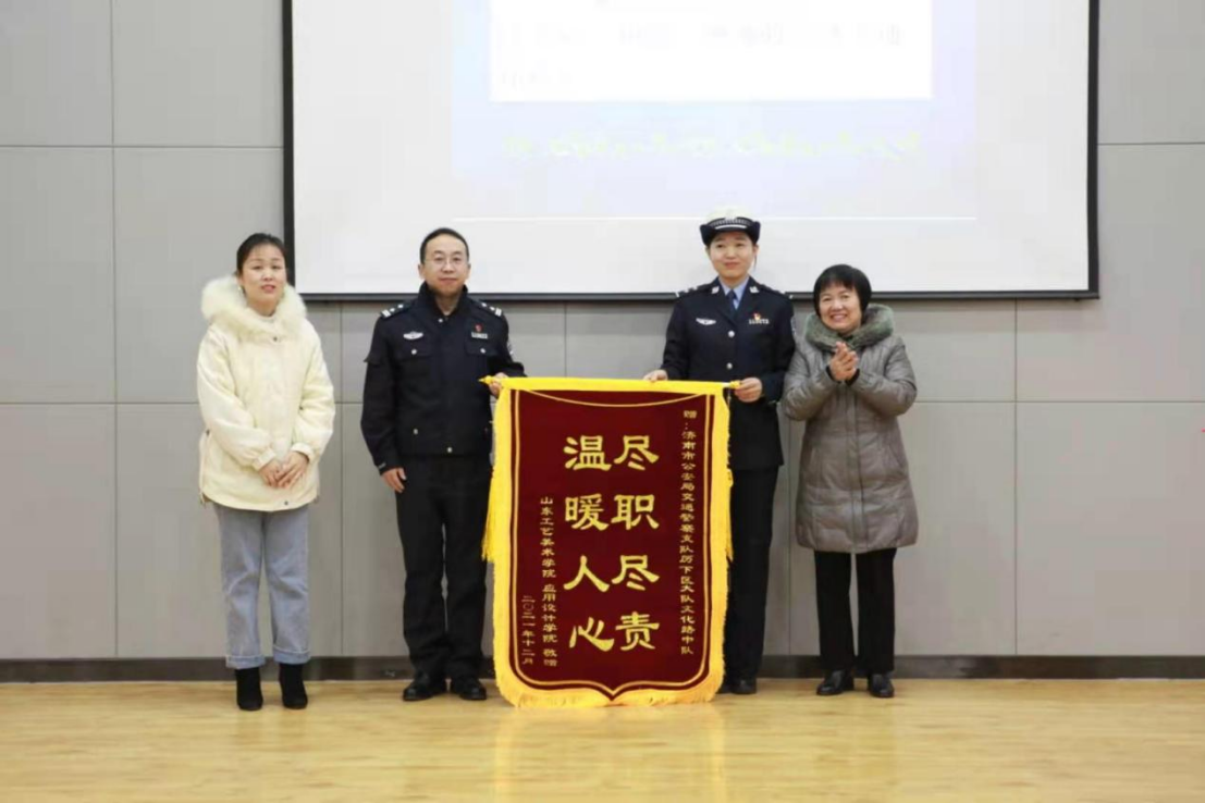 最后,由應用設計學院院長侯立平為兩位警官贈送了“盡職盡責,溫暖人心”的錦旗。
