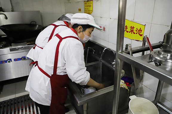 學校學生團干部走入食堂后廚