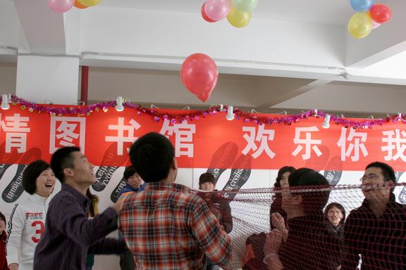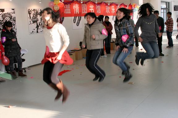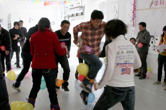 圖書館12月22日下午在圖書館一樓展廳舉行2012年迎新年文化娛樂活動。圖書館館長趙進、黨總支書記徐月梅與圖書館全體職工歡聚一堂,喜迎新年。 圖書館一樓展廳張燈結彩,暖意融融。下午14時,活動開始,圖書館館長趙進為活動致辭。他說,在2012年新年即將到來之際,我們歡聚一堂,共迎新年。我代表圖書館黨政班子,向全體館員、職工和干部,向在圖書館辛勤工作的勤工助學學生代表表示誠摯的慰問。向關心幫助圖書館發展的領導和友人表示衷心的感謝。祝大家新年愉快、身體健康、闔家幸福。 活動在歡快游戲吹氣球中拉開序幕,圖書館全體職工分成四個組分別進行了頂氣球、踩氣球、蒙眼作畫、念繞口令、夾氣球接力跑以及跳大繩等游戲,每一個小組都有備而來,在活動中里體現了圖書館全體員工的精神風貌,體現了圖書館事業的蓬勃生機,也體現了各部門的榮譽感和進取心。大家歡聲笑語,一下午的時間在不知不覺中就過去了。 此次活動全館上下人人參與,其樂融融,氣氛非常熱烈,充分展現了圖書館全體職工團結向上、營造和諧團隊的精神。