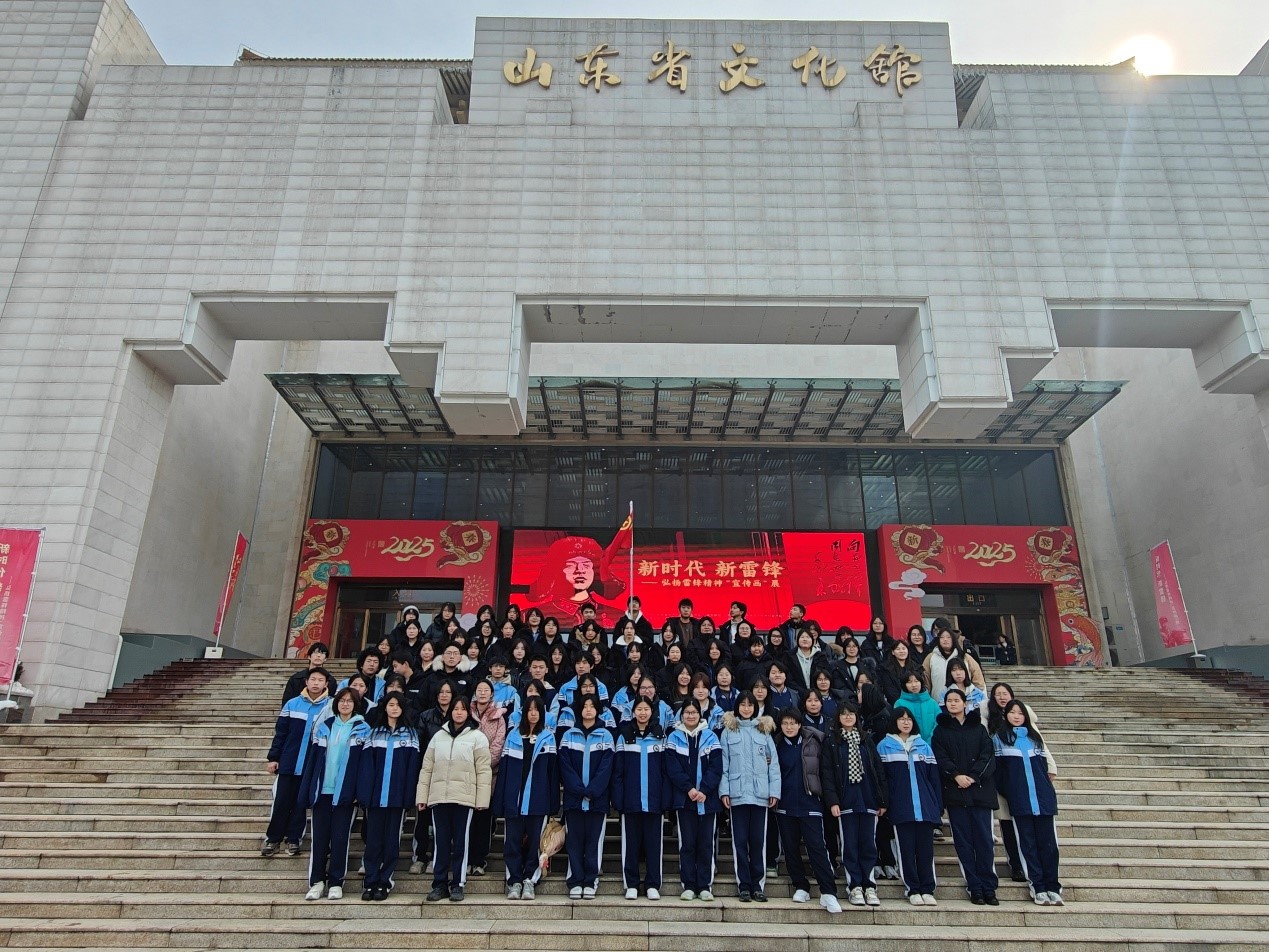 在山東省文化館,師生們首先參觀了雷鋒精神主題展區(qū)。一幅幅生動的雷鋒畫作,一段段珍貴的歷史視頻,將雷鋒的生平事跡與奉獻精神鮮活地展現(xiàn)在大家眼前。雷鋒同志無私奉獻、全心全意為人民服務的高尚品格,深深觸動了在場的每一人。師生們認真聆聽講解,積極交流感悟,深刻領會到作為新時代青年,應肩負起傳承和弘揚雷鋒精神的責任,在日常生活中踐行社會主義核心價值觀,為實現(xiàn)中華民族偉大復興的中國夢貢獻力量。