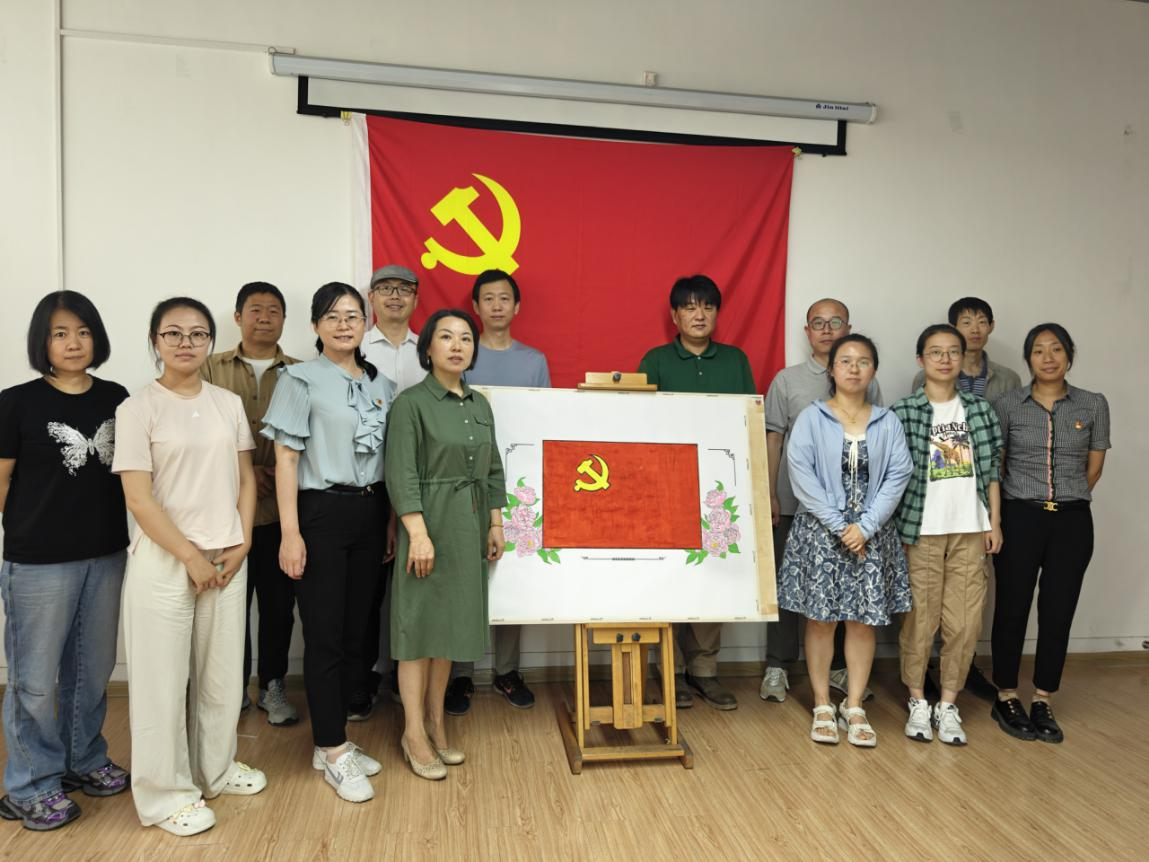 附中黨員侯鵬提前設(shè)計繪制了黨旗線稿,現(xiàn)場由附中全體黨員共同繪制完成。黨旗是一個黨的象征和標志,中國共產(chǎn)黨黨旗為旗面綴有金黃色黨徽圖案的紅旗,中國共產(chǎn)黨黨徽為鐮刀和錘頭組成的圖案。黨員們一筆一畫地手繪黨旗,用自己的一片赤子之心勾勒出對黨的崇敬和熱愛,踐行了黨的宗旨意識,堅定理想信念,傳承紅色基因,弘揚愛黨愛國精神。