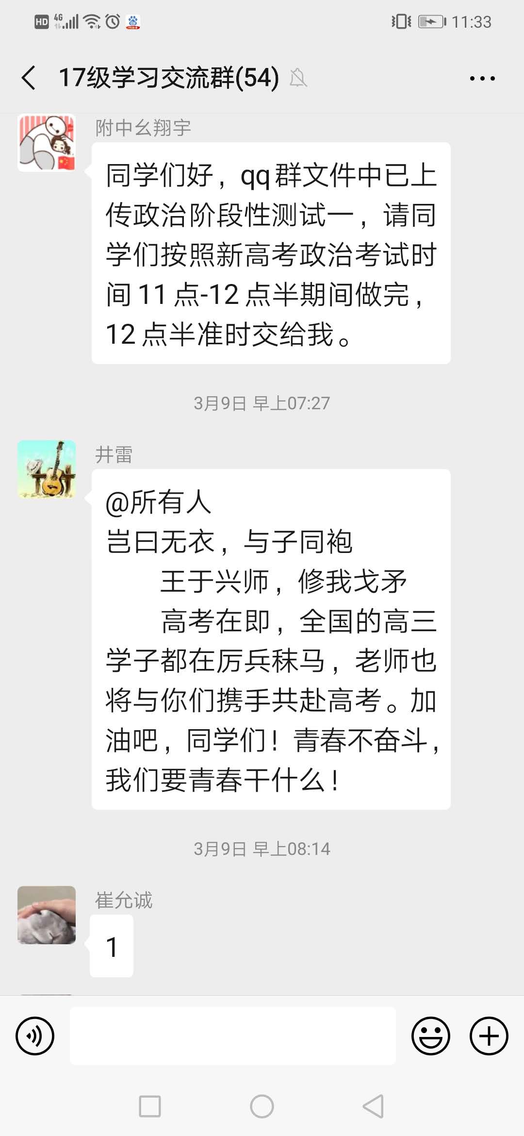 線上教學既是一次考驗,也是一次自我的提升。附中全體師生心手相牽,共抗疫情,唯愿春天早來,枝頭春滿,山河無恙,人間皆安。