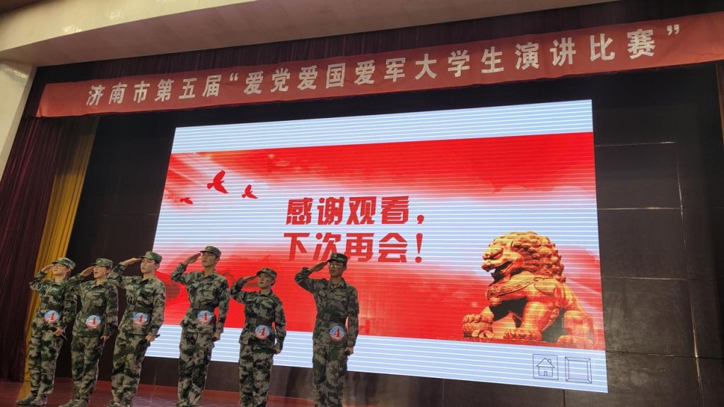 我校代表隊在指導老師學生工作部(處)馬軍臣的帶領下,經過3天的激烈比拼,最終取得國防教育技能競賽第一名、“愛黨愛國愛軍”大學生演講比賽第三名的成績,學校也被濟南市委宣傳部授予“國防教育工作示范單位”榮譽稱號。