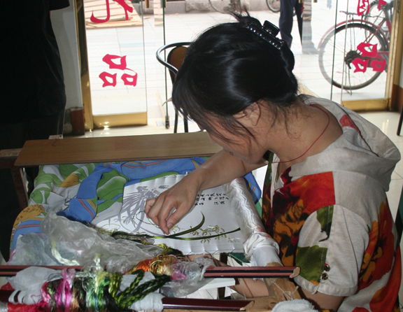刺繡藝人正在刺繡