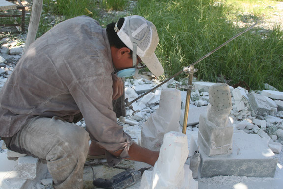 石雕藝人正在雕刻