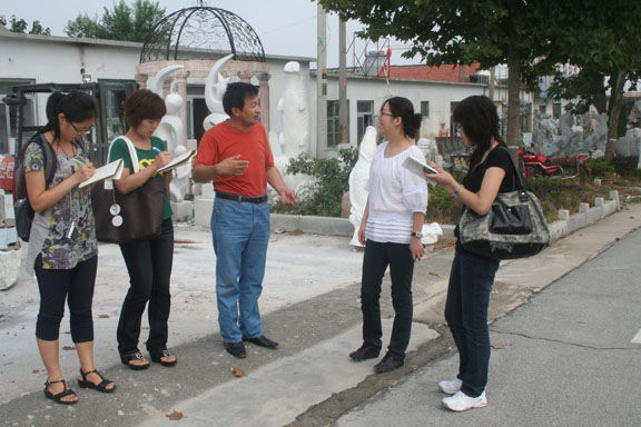 經(jīng)過兩天的實(shí)地考察,調(diào)研組對(duì)萊州市石雕產(chǎn)業(yè)的歷史淵源、發(fā)展?fàn)顩r、生產(chǎn)流程、銷售狀況等情況有了較深入地了解,對(duì)石雕企業(yè)在銷售產(chǎn)品的定位方面、藝術(shù)創(chuàng)新方面進(jìn)行了重點(diǎn)調(diào)研。