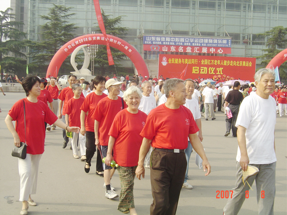 我院離退休干部參加山東省“全民健身與奧運同行”活動啟動儀式 [附圖]