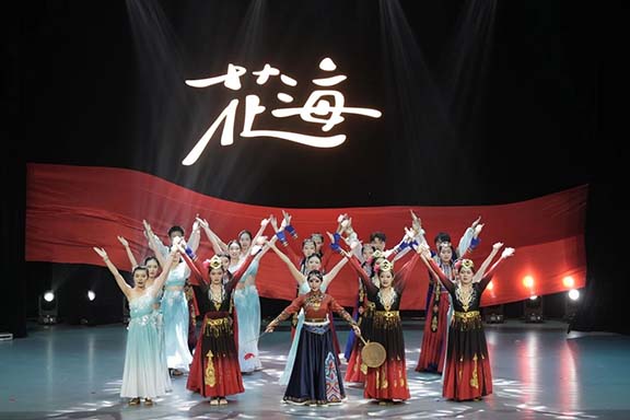 以青春之名書寫團結史詩,用舞動之光點亮偉大復興征程。視覺傳達設計學院的舞蹈《錦繡華章》通過對非遺舞蹈的演繹,構建民族文化共同體記憶;建筑與景觀設計學院的舞蹈《共脈》用詩意的肢體敘事,生動展現中華民族團結和諧的壯美畫卷;工業設計學院的舞蹈《民族和韻筑夢中華》以多元民族藝術語言展現中華文化精髓,構建出多元一體的民族共同體意象;數字藝術與傳媒學院的舞蹈《共綻團結花》用藝術形式奏響民族團結進步、共筑偉大復興的時代強音。