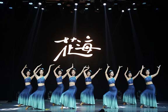 以舞步丈量五千年文明根脈,用身姿勾勒中華民族的精神圖騰。造型藝術學院的舞蹈《青春起舞筑夢中華》用躍動的舞姿映射出民族文化互鑒共榮的璀璨光芒;應用設計學院的舞蹈《歡聚》以肢體為筆墨,深情書寫民族文化的傳承史詩;現代手工藝術學院的舞蹈《灼華》生動詮釋“桃之夭夭,灼灼其華”的文化魅力。
