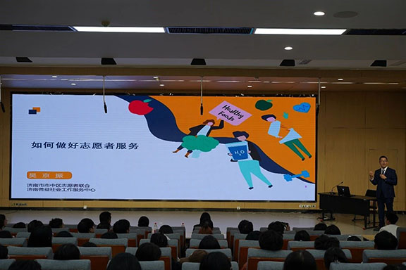 作為濟(jì)南善諾社會(huì)工作服務(wù)中心黨支部書記、主任,他是全國(guó)首批青少年事務(wù)社會(huì)工作示范項(xiàng)目負(fù)責(zé)人,也是山東省首個(gè)共青團(tuán)購(gòu)買社區(qū)青少年社會(huì)工作服務(wù)項(xiàng)目社工,更是山東省最早的社會(huì)工作者之一。吳京振在宣講中細(xì)致地闡述了如何有效地開展志愿服務(wù)工作,他結(jié)合自身豐富的實(shí)踐經(jīng)驗(yàn),提供了一系列的方法和策略,激勵(lì)同學(xué)們積極參與社會(huì)服務(wù)活動(dòng),以實(shí)際行動(dòng)奉獻(xiàn)社會(huì)。