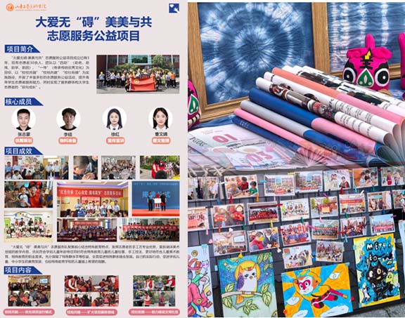 “大愛無礙·美美與共”志愿服務公益項目始于2020年10月,在學校團委和學院黨總支的指導下,項目結合藝術專業特色,以“四助”(助老、助殘、助學、助困)“一傳”(傳承傳統優秀文化)為服務內容,全力打造“校校共融”“校地共建”“校社銜接”三大志愿服務品牌模式,努力完善“優化項目運行模式”“擴大項目服務領域”“助力建設文明社區”三大項目目標。項目實施以來,聯合高(特)校4所、校地共建2處、校社銜接20余個,累計志愿服務103次,參與志愿者750人次,累計服務人數3700人次。先后入選團中央“全國大學生井岡山精神志愿宣講團”和“全國大學生中醫藥志愿宣講團”,獲濟南市第五屆志愿服務項目大賽銅獎、濟南市“五四典型”志愿服務隊、歡迎來到公海7108線路“優秀青年志愿服務隊”等多項榮譽。
