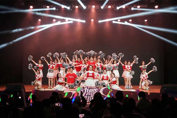在“青春激昂 奮斗不止”篇章的表演中,工業設計學院代表隊首先登場,他們表演的舞蹈《悅青春》通過摩登的動作、巧妙的配合、灑脫的臺風贏得觀眾的熱烈掌聲;造型藝術學院代表隊的啦啦操《躍夢青春》動作整齊、充滿力量,展現了青春的神采奕奕和生機勃發;應用設計學院同學們的啦啦操《青春而舞,熱烈有時》動作酣暢淋漓、自信而大方,飽滿的熱情感染著現場的觀眾。