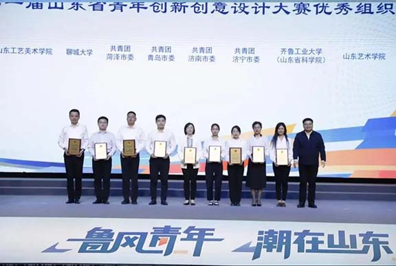 5月10日,由共青團山東省委、山東省學生聯合會主辦的“‘魯’風青年‘潮’在山東”第一屆山東省青年創新創意設計大賽頒獎典禮,在菏澤曹縣“e裳”小鎮·數字經濟產業園舉行。我校師生在本次大賽中,斬獲一等獎2項、二等獎12項、三等獎10項,16位教師榮獲優秀指導教師獎,學校團委榮獲優秀組織獎。