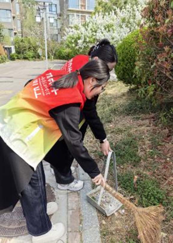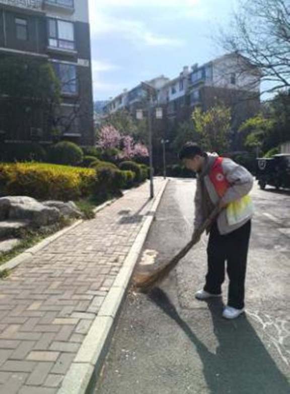 活動現場,志愿者們分工明確、熱情高漲。負責路面清掃的志愿者們手持掃帚,認真地將落葉和垃圾掃到一起,再仔細裝入垃圾袋;承擔綠化帶清理工作的志愿者們則彎下腰,仔細撿拾隱藏在灌木叢中的煙頭、紙屑等垃圾。在大家的共同努力下,社區道路和綠化帶變得干凈整潔,面貌煥然一新。