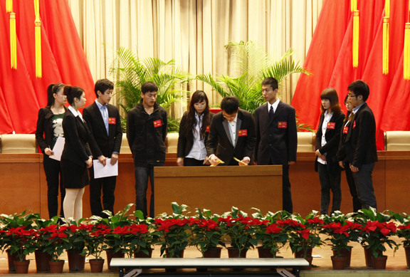 12月4日上午9:00,我校第十八次學生代表大會在長清校區學術報告廳隆重召開,副院長張云龍出席會議并講話。校工會主席祁建萍、學工部部長陳軍、團委書記袁文昌、山東省學生聯合會駐會主席宋繼斌、第十七屆學生會主席宋正強及各二級學院團總支書記參加本次會議并主席臺就坐,207名學生代表參加會議,會議由第十八次學生代表大會執行主席陳太源主持。自2009年12月6日的第十七次學生代表大會召開至今,學生會工作始終以圍繞中心、服務大局、提高素質、凝聚力量為出發點,在工作方式上不斷創新,得到了學校領導和全體學生的大力支持。為了開好此次大會本屆學生代表大會,籌備委員會自2010年10月份成立以來,在校黨委的正確領導、大力支持和校團委的悉心指導下,歷時一個月、兩個階段,經過校、院兩級學生組織的卓有成效的籌備工作,終于順利召開了此次大會。大會共分為三個階段進行。會議第一階段,首先由第十七屆學生會副主席傅瞳為本次大會致開幕詞,深刻闡述了召開此次大會的目的和重要意義。接著,山東省學生聯合會駐會主席宋繼斌宣讀了山東省學生聯合會發來的賀信。隨后副院長張云龍作重要講話,最后團委書記袁文昌、校工會主席祁建萍分別向大會致辭。副院長張云龍在講話中對我校學生會工作給予了充分肯定,他表示,本次會議是一次總結過去、展望未來的盛會,校黨委和校行政高度重視學生工作,提出了以教學為中心、以教師為主導、以學生為主體的辦學理念,不斷優化育人環境,提高人才培養質量。他還指出,學生會是廣大學生的群眾組織,也是黨團組織的堅強后首,是連接學校和同學的橋梁和紐帶。第十七屆學生會在校黨委的領導和校團委的指導下,以創先爭優活動為引領,不斷完善工作理念,創新工作方法,積極為廣大同學服務,開展了一系列富有成效的活動,較好的完成了各項工作任務,得到了廣大同學的一致好評。接著,張云龍代表校黨委和校行政對全校青年學生提出了四點希望和要求:牢記使命,不負重托;群策群力服務同學;努力學習,勇于實踐;求實創新,繼往開來。團委書記袁文昌代表團委向大會致詞。他首先代表團委向大會召開表示祝賀,并對即將產生的新一屆學生會和學生干部提出希望和要求,他希望代表們牢記責任和使命,團結同學全面發展,同時還要不斷加強學生會自身建設,不斷創新工作思路。校工會主席祁建萍代表工會向大會表示祝賀,并對同學們寄予了殷切希望。隨后,大會工作人員宣讀了山東師范大學學生會發來的賀信,大會還收到了來自山東輕工業學院、山東藝術學院、山東中醫藥大學,山東女子學院、山東交通學院、山東省工會干部管理學院、山東勞動職業技術學院等駐濟高校發來的賀信、賀電。在會議的休息時間,大會與會領導、老師和代表合影留念。最后,由第十七屆學生會主席宋正強做第十七屆學生會工作報告,第十八屆籌委會成員李潤明向全體代表宣讀倡議書。會議第二階段為各代表團分組會議。各代表團分組學習討論,學習討論校黨委、省學聯領導的講話;討論工作報告;討論倡議書;收集提案。會議第三階段,大會通過了宋正強同學關于《十七屆學生會工作報告》的決議、《歡迎來到公海7108線路學社會章程(修正案)及決議、倡議書,公布了選舉辦法、總監票人、監票人名單。隨后,候選人員依次上臺演講,使代表們對第十八屆學生代表大會委員候選人有了更加清晰的認識。在全體代表的監督下,大會選舉產生了第十八屆學生委員會委員:陳太源、于曉、李潤明、李超、甘文、秦婉、張嘉瑞、孫玉龍、趙凱、魏波、翟羽佳、王華新、王棟、白林虎、朱惠贈。隨后,由新當選的學生會委員會代表陳太源發言,第十七屆學生會副主席馬真珍致閉幕詞,至此,我校第十八屆學生代表大會圓滿落幕。此次大會對我校學生會在過去一年工作的基本經驗和工作思路做了總結,對學生會面臨的形式和存在的問題進行了深入的探究與思索,提出了有關我校教學科研、后勤生活、學校改革發展,學生工作等方面的提案,并對今后的學生會工作做出了規劃。大會充分發揚了我校學生自主求實的精神,積極引導學生代表通過提案促進我校學生工作的科學發展,積極調動廣大青年學生的主動性和創造性,充分發揮學生代表聯系學校和學生的橋梁作用。同時,對發揮學生民主權力、加強學生會機制建設、維護廣大同學切身利益,服務青年學生成長成才具有重要的意義,相信通過本次大會,全校同學將會繼續發揚與時俱進的精神,不斷提高自身素質,在實踐中學習,在鍛煉中成才,為建設和諧校園貢獻出自己的力量!