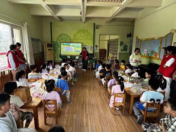 手工織布作為一門傳承千年的紡織技藝,正在慢慢淡出我們的現代生活。這項由宋末元初著名紡織家黃道婆改良的腳踏織布技藝,如今已成為珍貴的非物質文化遺產。活動中,志愿者們通過生動形象的PPT展示,帶領小朋友們穿越時空,從織布機的歷史演變到紡織原理的趣味講解,孩子們在驚嘆中感受著傳統文化的獨特魅力。在動手體驗環節,志愿者們用廢舊布料和毛線,現場展示了傳統織布技藝。小朋友們興致勃勃地參與其中,將廢舊材料編織成五彩繽紛的布藝作品。通過這次活動,孩子們不僅感受到了傳統手工藝的魅力,還親身體會到了“變廢為寶”的環保意義。