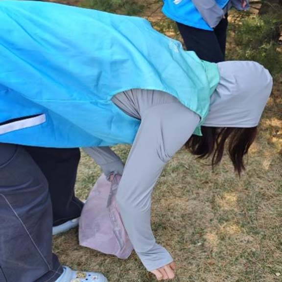 “園博園是城市的生態名片,我們的每一次彎腰、每一次撿拾,都是對綠色生活的踐行”。活動當日清晨,同學們身著統一志愿服裝,攜帶手套、夾子、分類垃圾袋等工具,精神抖擻地抵達園博園。隨后,同學們分成6個小組,沿著園區步道、湖畔、綠化帶等區域分散行動,開啟“綠色尋寶”之旅。