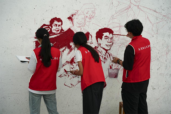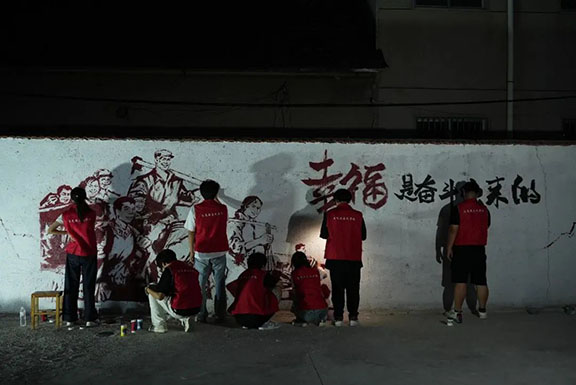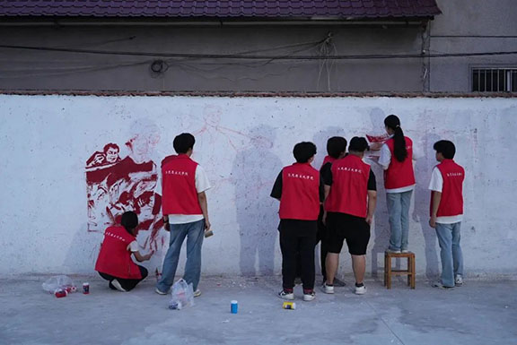 團隊來到劉家召子村村民委員會開展紅色墻繪創作活動。創作過程中,隊員們分工明確,有的負責勾勒輪廓,有的負責調配顏料,有的負責填充色彩,大家配合默契,干勁十足。經過兩天的辛勤努力,原本單調的墻壁煥然一新。栩栩如生的紅嫂形象、昂揚向上的奮斗場景、充滿希望的鄉村振興畫面……一幅幅主題鮮明、色彩飽滿的紅色墻繪,不僅美化了鄉村,更讓紅色精神以直觀生動的方式走進了村民的生活。