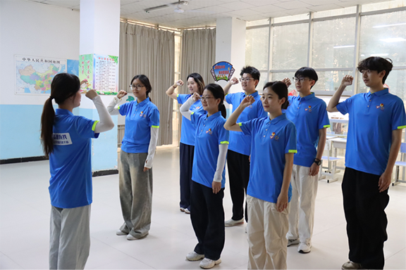 抵達喀什前,團隊深入學習2025年“志愿有我?讓愛飛躍萬水千山”魯喀支教要求,領(lǐng)悟山東援疆指揮部的期待。在支教開始前,志愿者們面向旗幟莊嚴宣誓:以信念抗艱苦,以實干煉成長,在奉獻中讓青春閃光。