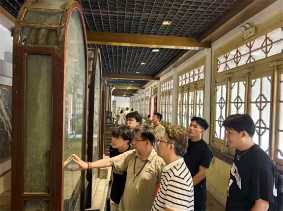 團隊走進棗莊明佑博物館。跟隨王燦館長學習并參觀了多個著名的經典碑刻和拓片,中古碑刻與拓片的陳列如展開一部立體的“金石史書”。團隊成員逐幀記錄碑刻的風化斑駁、文字殘缺,這些館藏珍品,不僅是書法演變的活化石,更以“微縮樣本”姿態(tài),為后續(xù)田野調查中辨識散存碑刻的時代特征、解讀地域文化基因,筑牢了實證根基 。