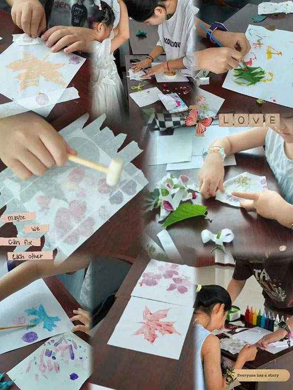 非遺傳承坊中,藍白相間的扎染手帕、帶著自然紋理的拓印書簽,會讓孩子們讀懂“古法技藝”的智慧,原來樹葉與染料也能碰撞出驚艷的美。
