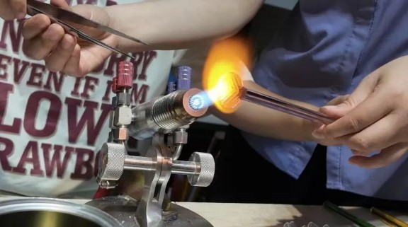 實踐的核心,直指琉璃手工制作工坊這一非遺傳承的“靈魂現場”。面對1600℃的熾熱熔爐,學子們親歷了“火中取藝”的極致考驗:選料需辨純度、定品性,塑形要在吹塑間拿捏毫厘,淬火則考驗對瞬息萬變的把控——每一步都是與火、與時間的博弈。