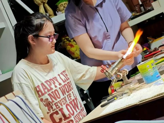 當親手制作的琉璃小品在冷卻中定格,“匠心”二字不再是課本上的概念,而化作掌心的溫度與靈魂的烙印。“真正的傳承,要以肉身感知技藝之重,以虔敬承接匠魂之炬。”一位團隊成員在實踐日記中寫道,這場高溫實踐課,讓大家讀懂了“十年功成一瞬”的工匠精神。