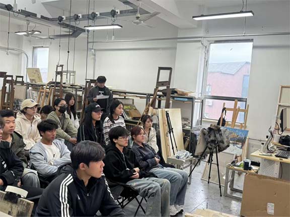 隨后,活動通過歷史故事復盤與影像資料展示,讓紅色記憶與青年心靈產生深度共鳴。“淵子崖保衛戰”的悲壯歷史率先映入團員們的視野——1941年12月,面對日寇的瘋狂掃蕩,沂蒙淵子崖村的男女老少同仇敵愾,用土槍、大刀、長矛筑起血肉長城,譜寫了“中華抗日第一村”的壯烈史詩。同學們暫擱畫筆,目光聚焦于這段歷史,仿佛跨越時空與當年的村民對話,深刻體會到沂蒙精神中“不畏強敵、敢于斗爭、保家衛國”的鐵血底色。