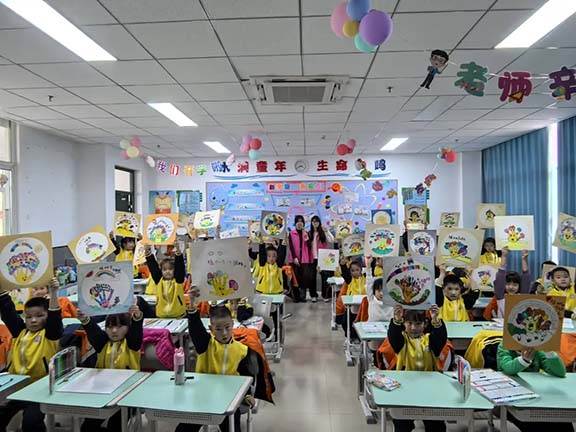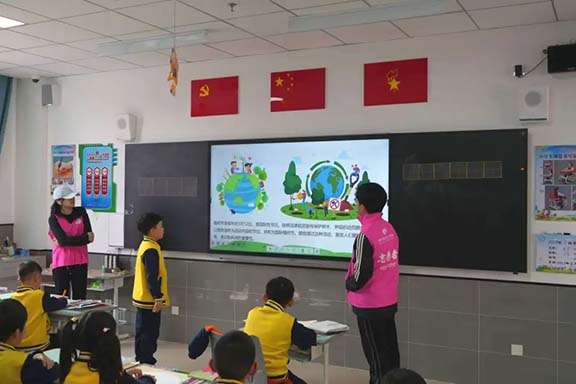 活動中,志愿者們和一年級的小朋友們一起學習了植樹節的起源、發展歷程以及背后蘊含的文化意義,通過生動的講解和視頻素材,讓同學們認識到生態保護對人類生存、社會發展以及地球未來的深遠意義。鼓勵水鳴街小學的“小水滴們”用行動踐行環保理念,為大地增添一抹生機勃勃的綠色風景。