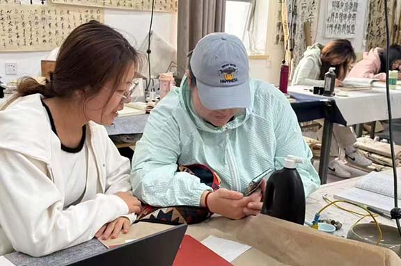 (圖為團支部書記向同學們講解“國家安全,青春挺膺”的含義)