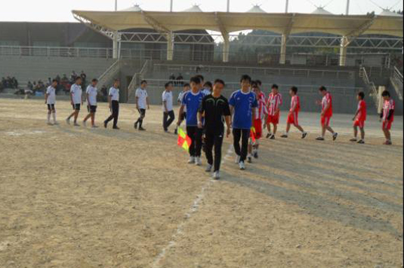 比賽伊始,我校足球隊就表現出了東道主的霸氣,驕陽下的隊員個個精神飽滿,憑借他們嫻熟的球技,開場不久我校隊員就破門領先一分。接下來隊員們信心倍增,士氣高昂,向對方球門屢次轟炸,數次破門得分。下半場開始十幾分鐘我對球員乘勝出擊,比分再次拉大,觀眾席一次次傳出我校同學激動的歡呼聲。比賽最后,兩隊隊員體力下降,但雙方一直堅持不懈,我校隊員更是顯示出主場作戰的士氣,臨近比賽終了,比分被鎖定為6:0。我校幾名參賽隊員代傷上陣,依舊堅持到了比賽的最后,我校足球隊員贏得的不僅是比分,還是拼搏的精神。