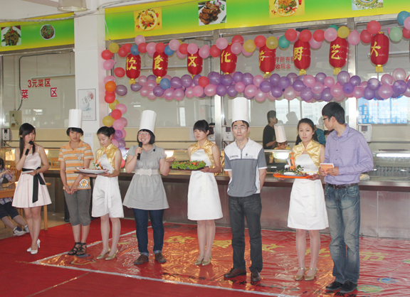 5月12日下午2:30,由我校校學(xué)生會(huì)、飲食服務(wù)中心主辦的第六屆飲食文化節(jié)開(kāi)幕式暨廚藝大比拼在長(zhǎng)清校區(qū)餐廳三樓拉開(kāi)帷幕。參加開(kāi)幕式的嘉賓有團(tuán)委宣傳部部長(zhǎng)李忠誠(chéng)、飲食服務(wù)中心主任徐思才、一樓餐廳經(jīng)理單清謙、二樓餐廳經(jīng)理李修蘭、三樓餐廳張國(guó)華師傅及校學(xué)生會(huì)主席團(tuán)成員、各二級(jí)學(xué)院學(xué)生會(huì)主席。