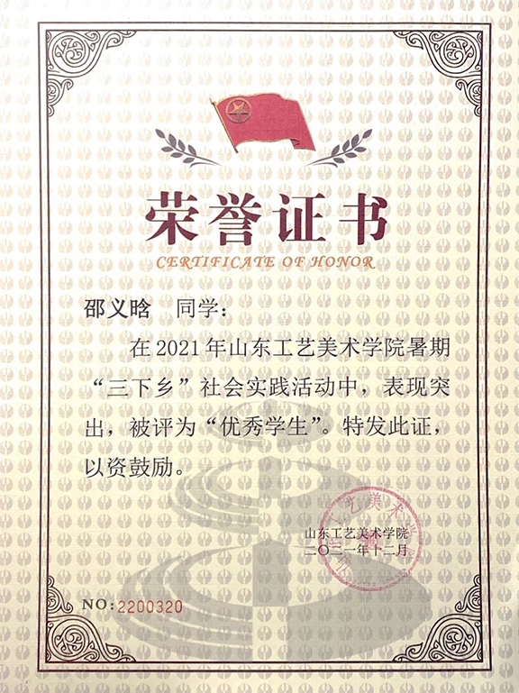在社會實踐方面,我曾參加暑期“三下鄉”社會實踐活動,針對平陰縣玫瑰產業展開深入調研,并提出“鄉村IP形象”的振興方案,同時被學校評為“優秀學生”的榮譽稱號。此外,我還積極參與專業相關實際項目,在青島西海岸新區啤酒節燈組設計、青島創新節設計等項目中表現突出,部分方案被選中投入實際生產之中。