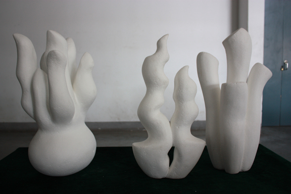 一直以來都非常喜歡樹的這種造型,特別是樹枝部分的交錯復雜,猶如一種頑強的生命力從樹根部分向上攀巖。每個交叉的地方就如人生的抉擇。這一作品的樹枝部分用立體球的形式在上面雕刻出其縱橫交錯,意在表現樹枝這種攀延和本身的形式美感。 ——丁陽