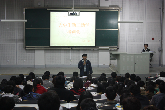 為使10級同學更好的了解我校大學生勤工助學各崗位,進一步為同學解答疑惑,及時幫助家庭貧困的同學,同時也為了促進我校勤工助學的工作健康有序的發展,10月20日下午6:00,由我校團委組織的勤工助學培訓交流會在長清校區綜合辦公樓四合堂順利舉行。參加此次交流會的有勤工助學團委組全體干事、勤工助學各小組組長及10級第一批接受勤工助學崗前培訓的同學。 此次培訓交流會由勤工助學干事長王長喜主持。