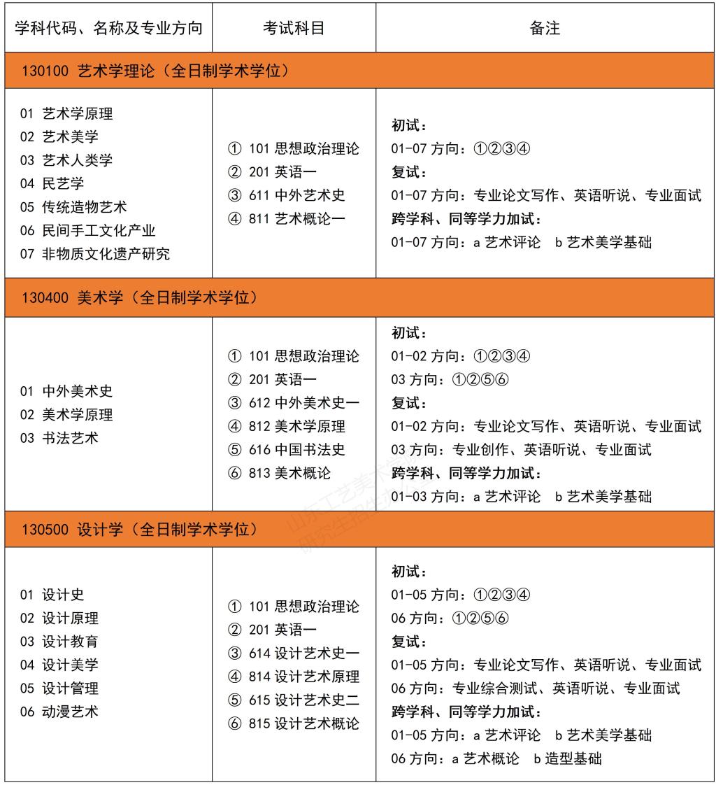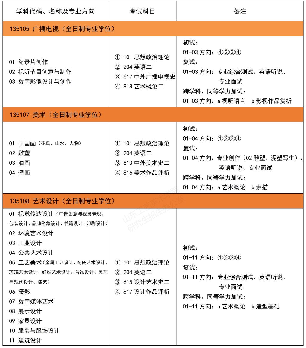 二、全日制藝術碩士專業學位研究生(MFA)招生專業目錄和初試參考書目