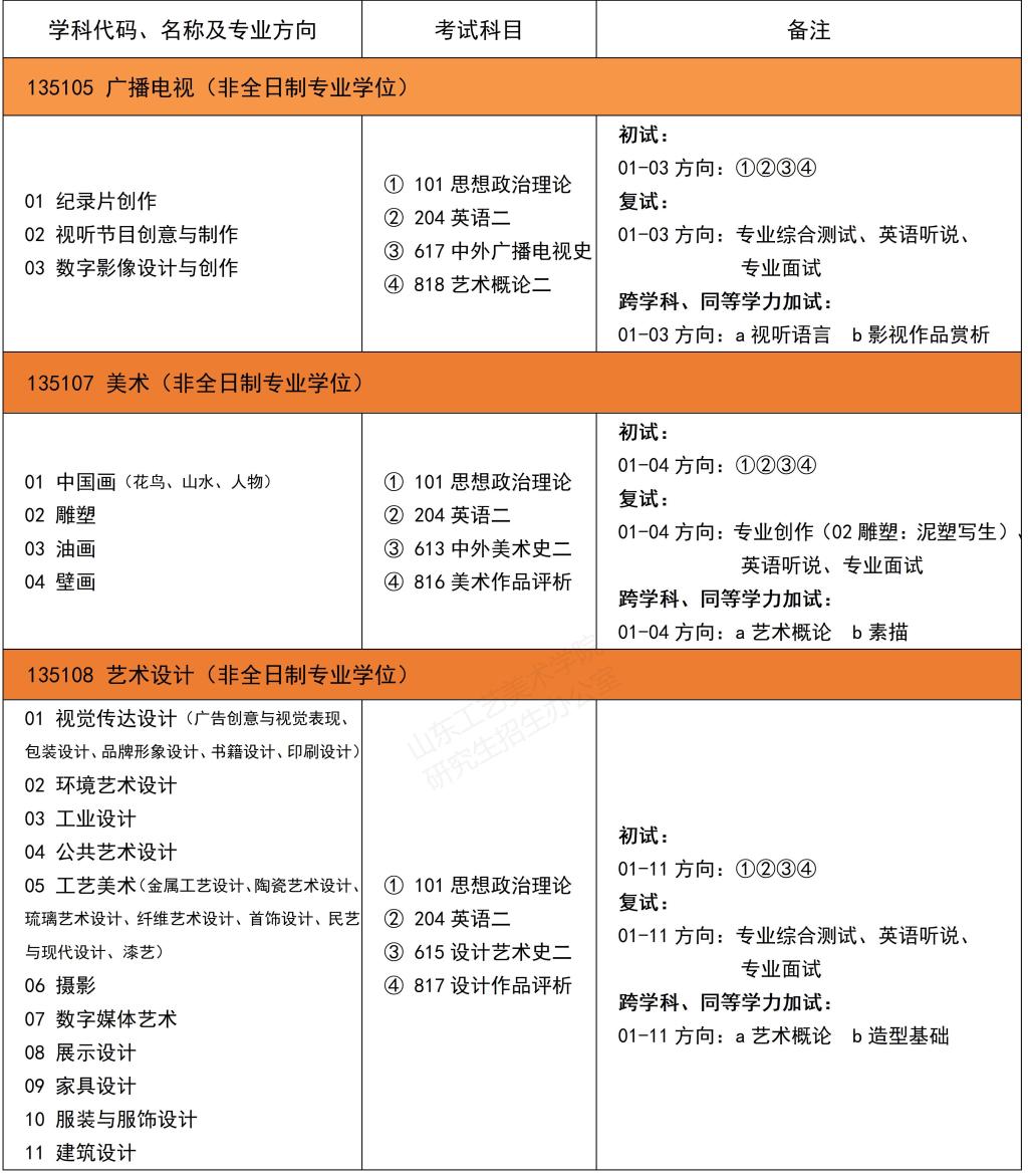 三、非全日制藝術碩士專業學位(MFA)研究生招生專業目錄和初試參考書目