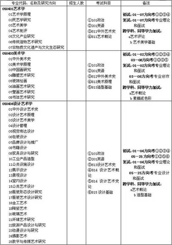 050401藝術(shù)學(xué)各方向初試參考書(shū)目: