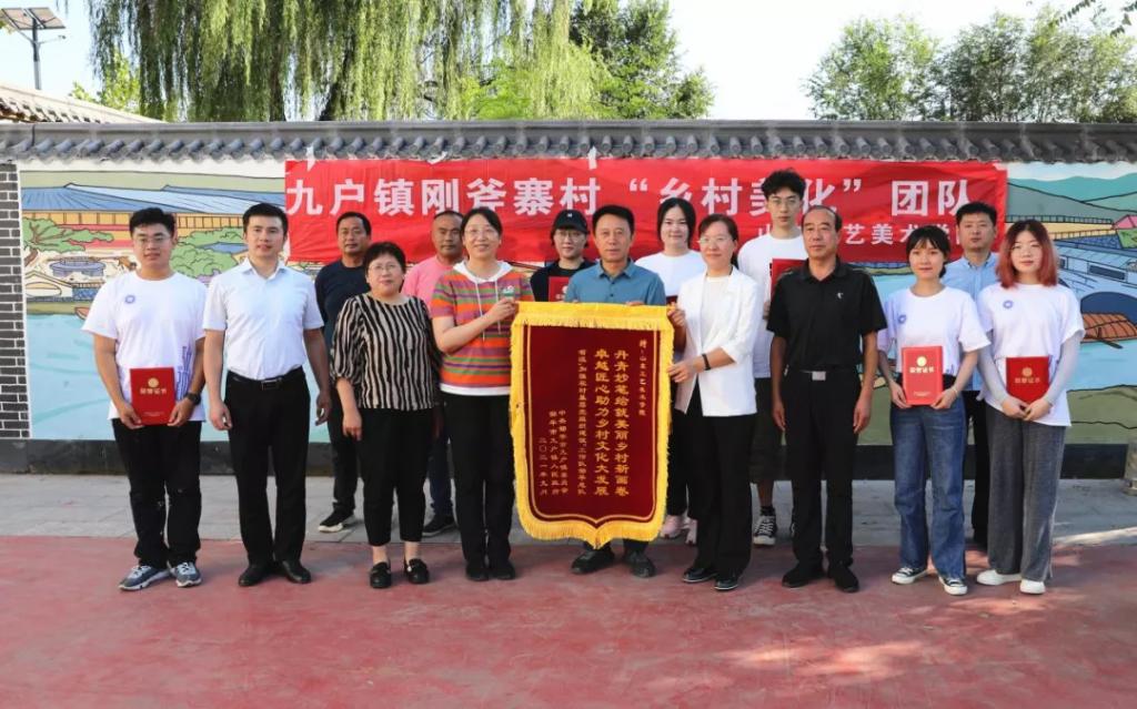 活動最后,省派“加強農村基層黨組織建設”工作隊鄒平市總隊隊長蔣文莉,九戶鎮黨委書記孫美榮將“丹青妙筆繪就美麗鄉村新畫卷,卓越匠心助力鄉村文化大發展”的錦旗授予幫扶團隊,并向研究生志愿者頒發了個人榮譽證書。