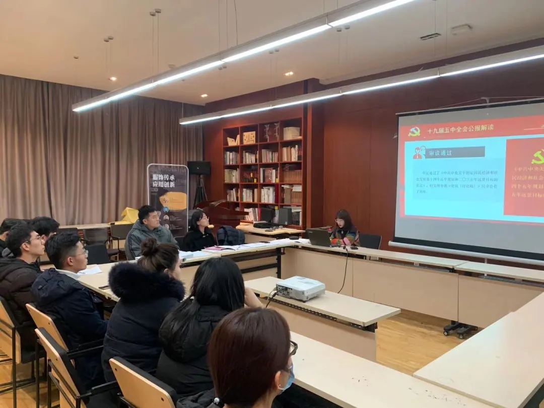 11月26日,研究生黨支部組織全體黨員學習十九屆五中全會精神。研究生黨支部書記王衛衛老師、研究生輔導員楊志鵬老師向同學們傳達了習近平總書記在黨的十九屆五中全會上的重要講話和全會精神。黨的十九屆五中全會,是在我國將進入新發展階段、實現中華民族偉大復興正處在關鍵時期召開的一次具有全局性、歷史性意義的重要會議,具有里程碑式的重要意義。