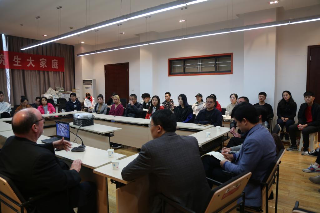 11月12日上午,研究生處在研究生活動室舉辦了主題為“藝術、設計和建筑的跨專業融合---工作室教學新方法研究”的交流活動,英國哈德斯菲爾德大學文化生態學研究中心主任道納爾﹒菲茲帕特里克教授與我校研究生進行了面對面的交流。