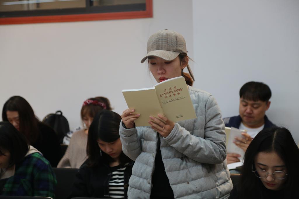 此次活動共分兩部分進(jìn)行。首先,在研究生黨支部書記王衛(wèi)衛(wèi)老師的帶領(lǐng)下,所有研究生黨員共同學(xué)習(xí)了《習(xí)近平關(guān)于“不忘初心、牢記使命”論述摘編》,黨員重溫了“中國夢”、“中國共產(chǎn)黨人的初心和使命”等多項(xiàng)重要內(nèi)容。在領(lǐng)學(xué)之后,王老師就重點(diǎn)內(nèi)容進(jìn)行了提問,引起了同學(xué)們的思考,使得學(xué)生黨員加深了對黨的認(rèn)識,增強(qiáng)了學(xué)習(xí)效果。