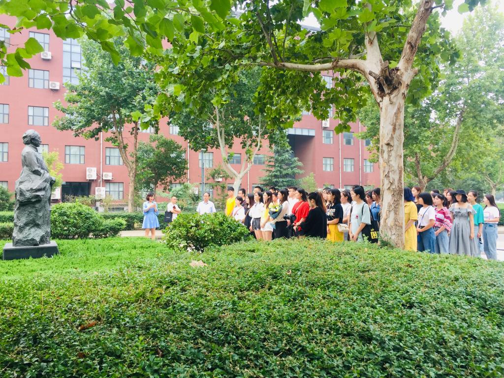 9月10日上午,2019級的研究生們先后來到朱銘先生、孫長林先生和張仃先生的雕像前敬獻鮮花。獻花儀式按照人物簡介、敬獻鮮花、宣讀獻詞、鞠躬致敬的步驟進行。王衛衛老師帶領同學們分別在三位先生的雕像前宣讀獻詞:“天工開物、匠心獨運;不忘初心、牢記使命”。最后,董占軍副院長鼓勵同學們要好好學習,以飽滿的熱情和奮發昂揚的精神,熱愛專業,鉆研學術,在藝術設計和學術研究上努力深造。