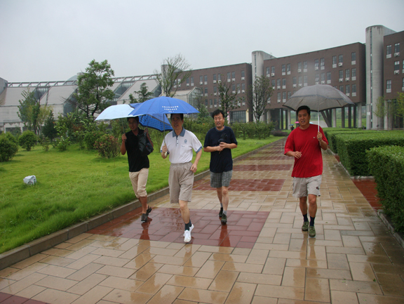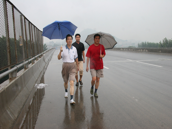 下午14時,參加活動的教職工從長清校區辦公樓前準時出發。雖然一場大雨不期而至,卻沒有影響他們以實際行動支持奧運、祝福奧運、為奧運加油的心情,反而為此次活動增添了酣暢、浪漫的色彩。經過4個多小時的長途跋涉,參與活動人員順利抵達千佛山校區。這一時刻,我校教職工的熱情與奧運精神融合、共鳴。這次活動不但促進了教職工的互動交流,增強了教職工的體質,增進了教職工的友誼,更是以實際行動支持北京2008奧運,為奧運祝福。